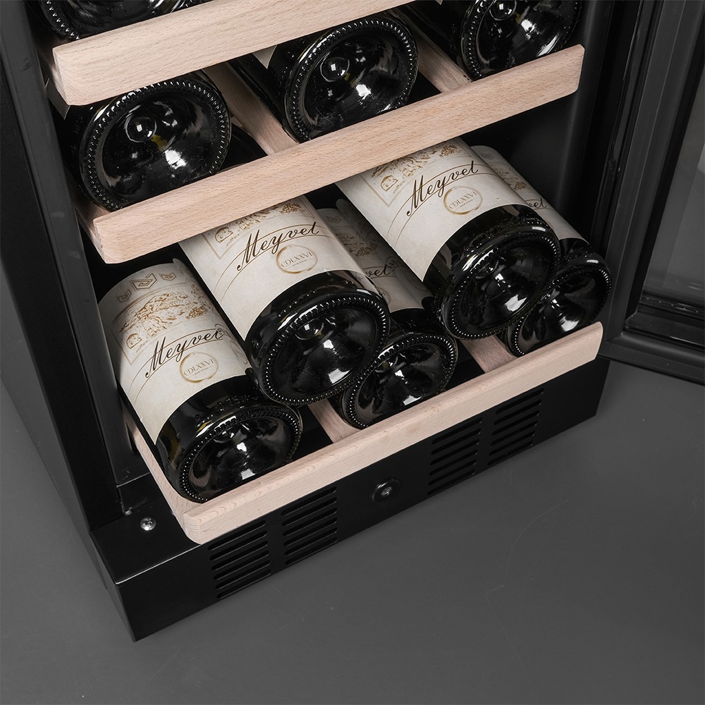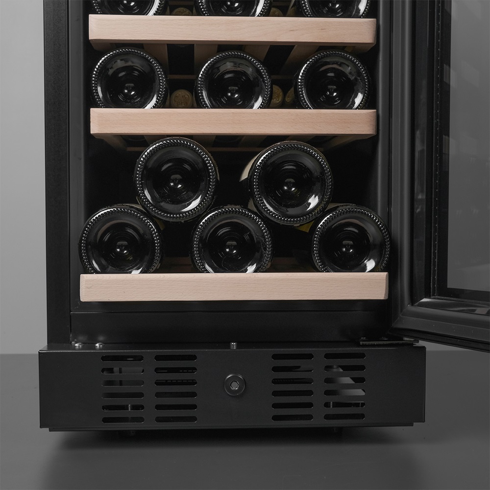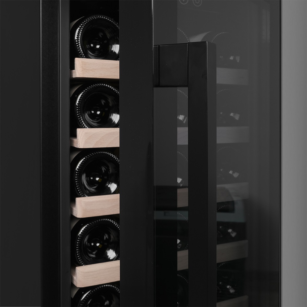 Винный шкаф оснащен компрессорной системой охлаждения с высокой степенью надёжности, а благодаря температурному диапазону от +5 до +18°C можно подобрать оптимальные условия хранения для любого сорта — от лёгких игристых до выдержанных красных. Уровень влажности внутри камеры поддерживается в пределах 60–80%, защищая пробки от пересыхания, а вино — от окисления. Даже спустя месяцы или годы напиток сохранит первоначальные ноты вкуса и аромата. Низкий уровень шума — всего 41 дБ — делает шкаф практически незаметным в повседневной жизни. Он не привлекает внимания, не мешает и не вступает в конфликт с атмосферой дома.
