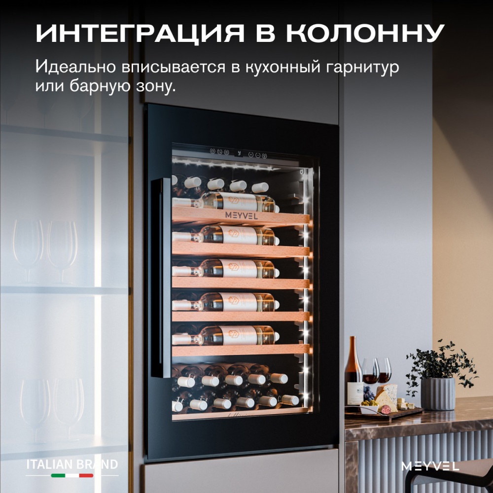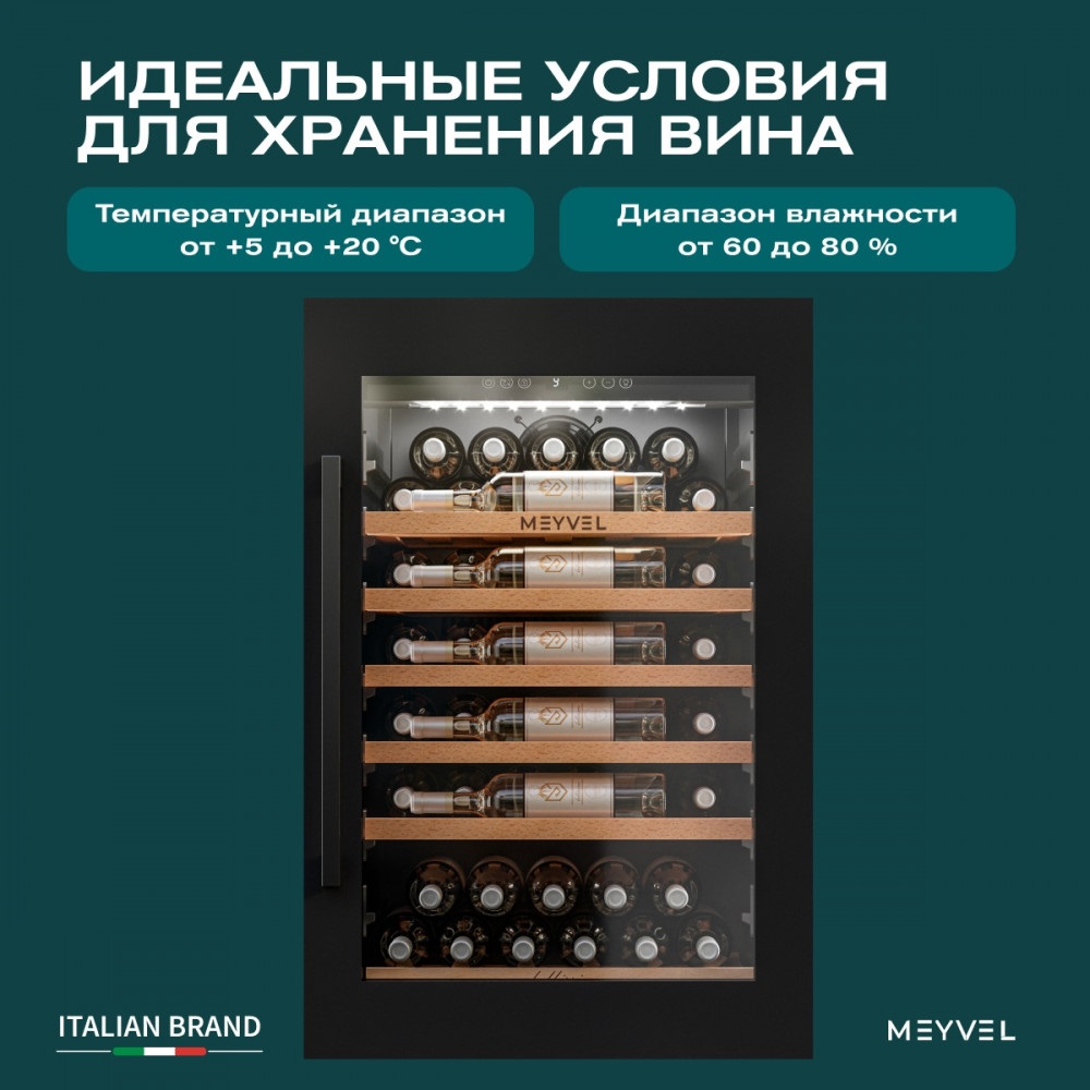 Современные винные шкафы давно перестали быть доступной только профессионалам техникой — сегодня они могут стать частью любого интерьера. Одно из таких продуманных устройств — винный шкаф Meyvel MV52PRO-KBB1, который сочетает технологичность, функциональность и стильный дизайн.