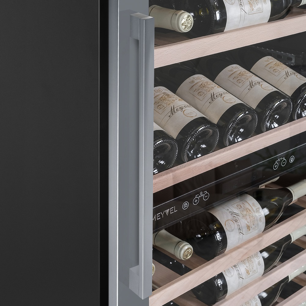 Продвинутый функционал и комплектация винного шкафа MV95-KST2 (Slim) от итальянского бренда Meyvel создаёт одну из самых высококачественных систем для профессионального и длительного хранения различных сортов вин. Внутри шкафа поддерживается влажность в диапазоне 60-80%, как в настоящем винном погребе. Этот винный холодильник отлично впишется в любой кухонный гарнитур благодаря своим размерам. Это одна из немногих моделей, у которой глубина не превышает глубину кухонной столешницы. Поэтому при установке он не будет выступать за габариты столешницы. (глубина стандартной столешницы 600 мм / глубина винного шкафа 530 мм) .