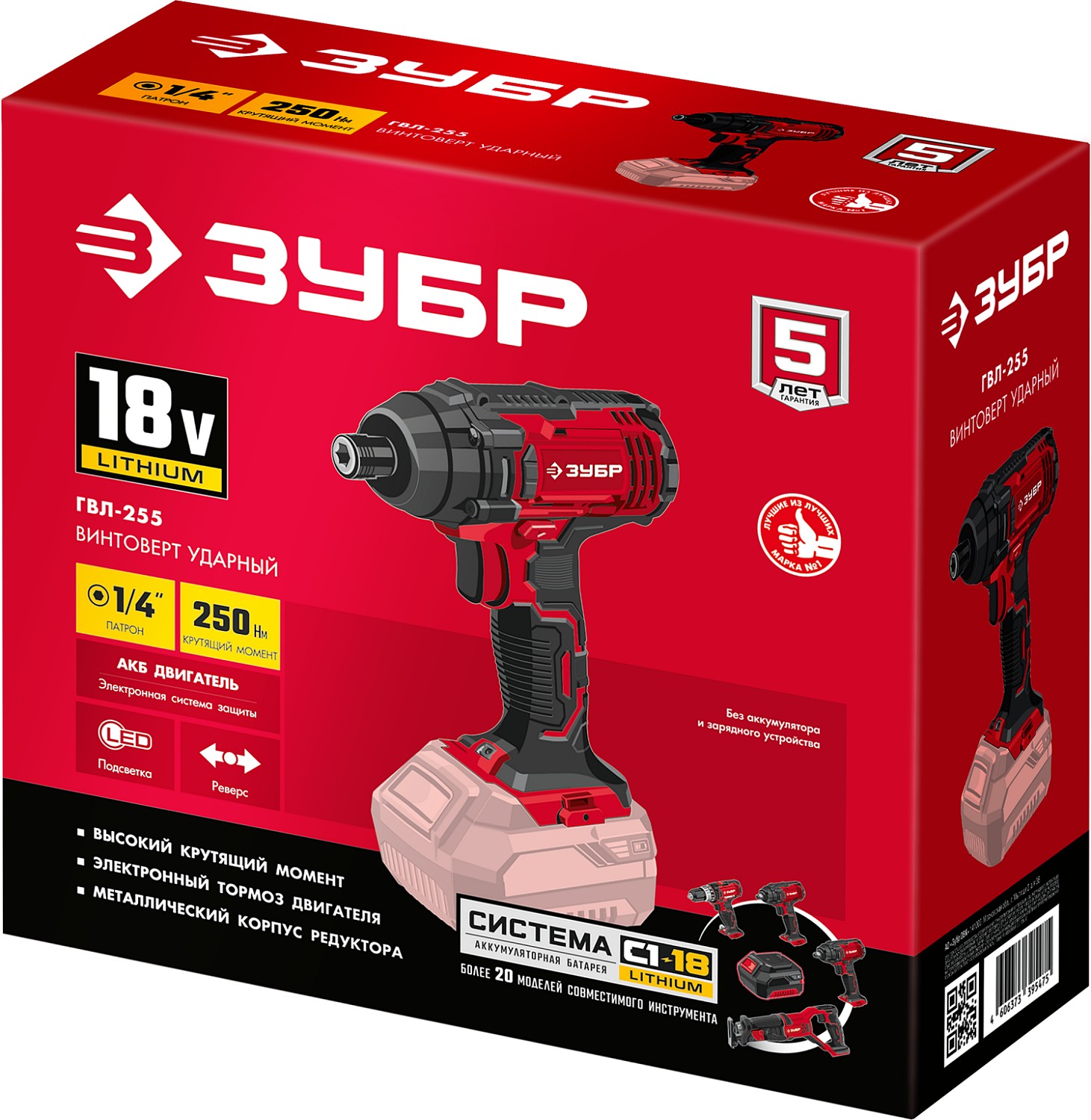Винтоверт ударный ЗУБР С1-18, 18 В, 250 Н·м, без АКБ, (ГВЛ-255)