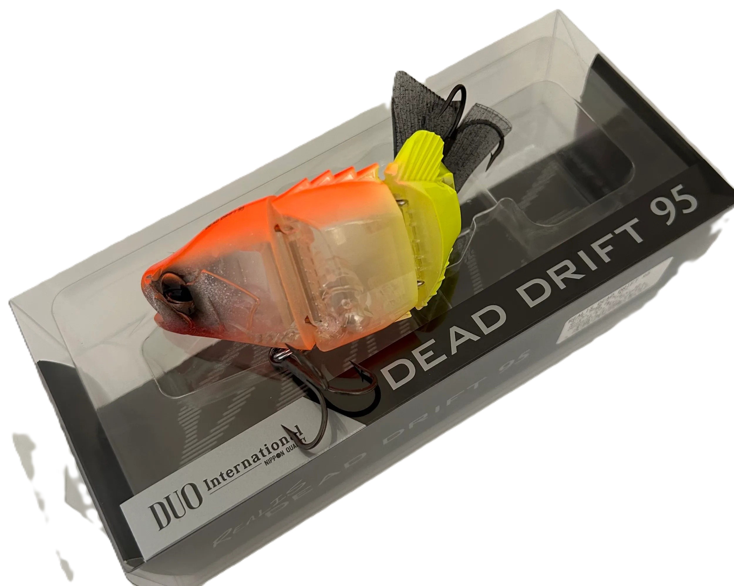 Воблер DUO Realis Dead Drift 95 в цвете #CCC0556 Double Orange CH Tail — это плавающий составной свимбейт, имитирующий ослабленную рыбку, которую уносит по течению. Он разработан для ловли крупного окуня и щуки методом дрифтинга (свободного дрейфа).