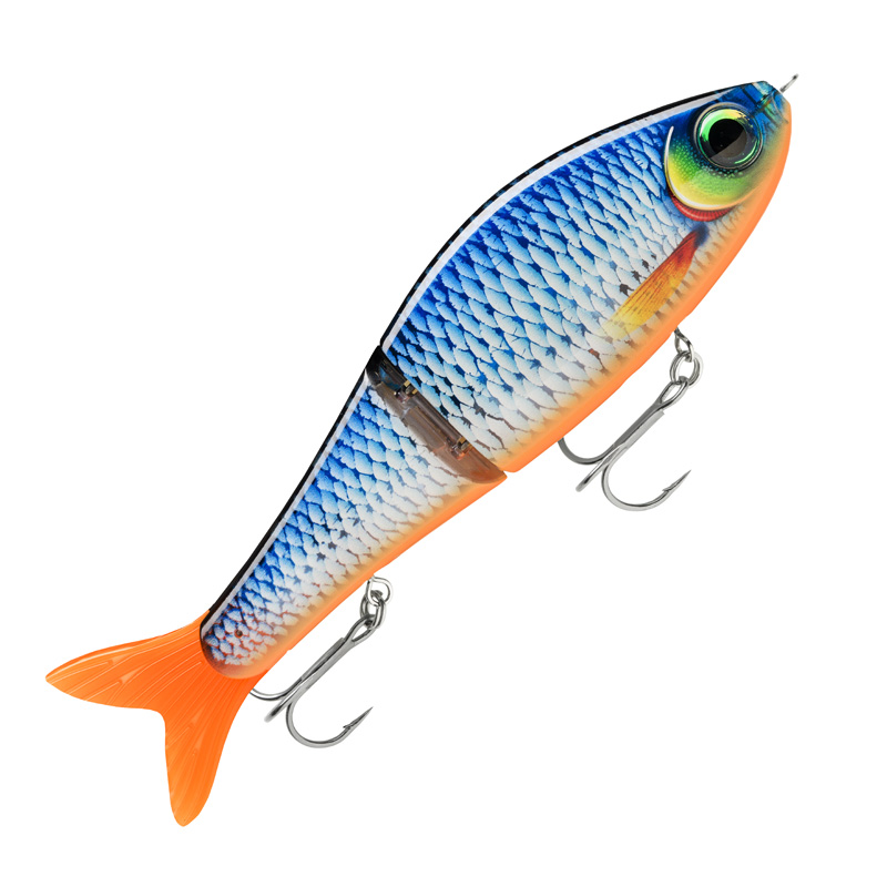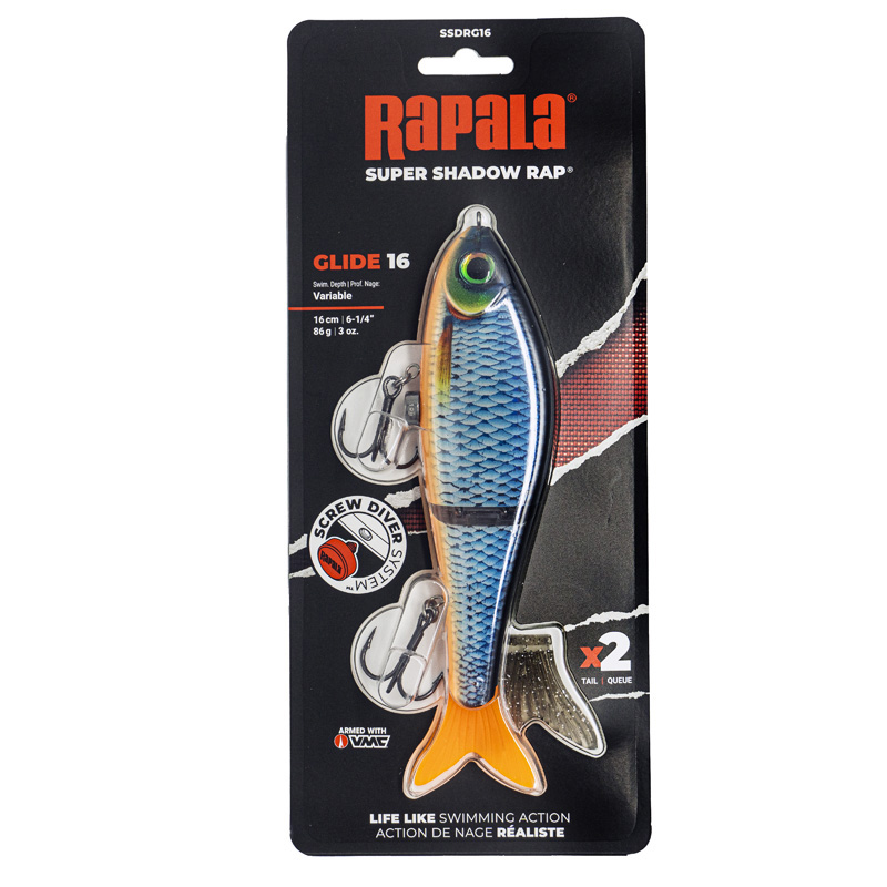 Super Shadow Rap Glide – настоящая щучья приманка, которая умеет делать разные трюки. Делая потяжки удилищем Вы обеспечиваете воблеру медленные и плавные S-образные движения, а используя технику твичинга заставляете его совершать короткие рывки с поворотом, но это только начало. Шарнирная система придаёт приманке природную естественность и реалистичность. Super Shadow Rap Glide имеет систему Screw Diver и с помощью дополнительных вольфрамовых грузиков можно изменить вес приманки, адаптируя его под конкретные условия. Просто вкрутите грузик или выкрутите. Также в комплект входит запасной хвост, позволяющий выбирать натуральную или агрессивную расцветку. Это увеличивает шансы на успех.