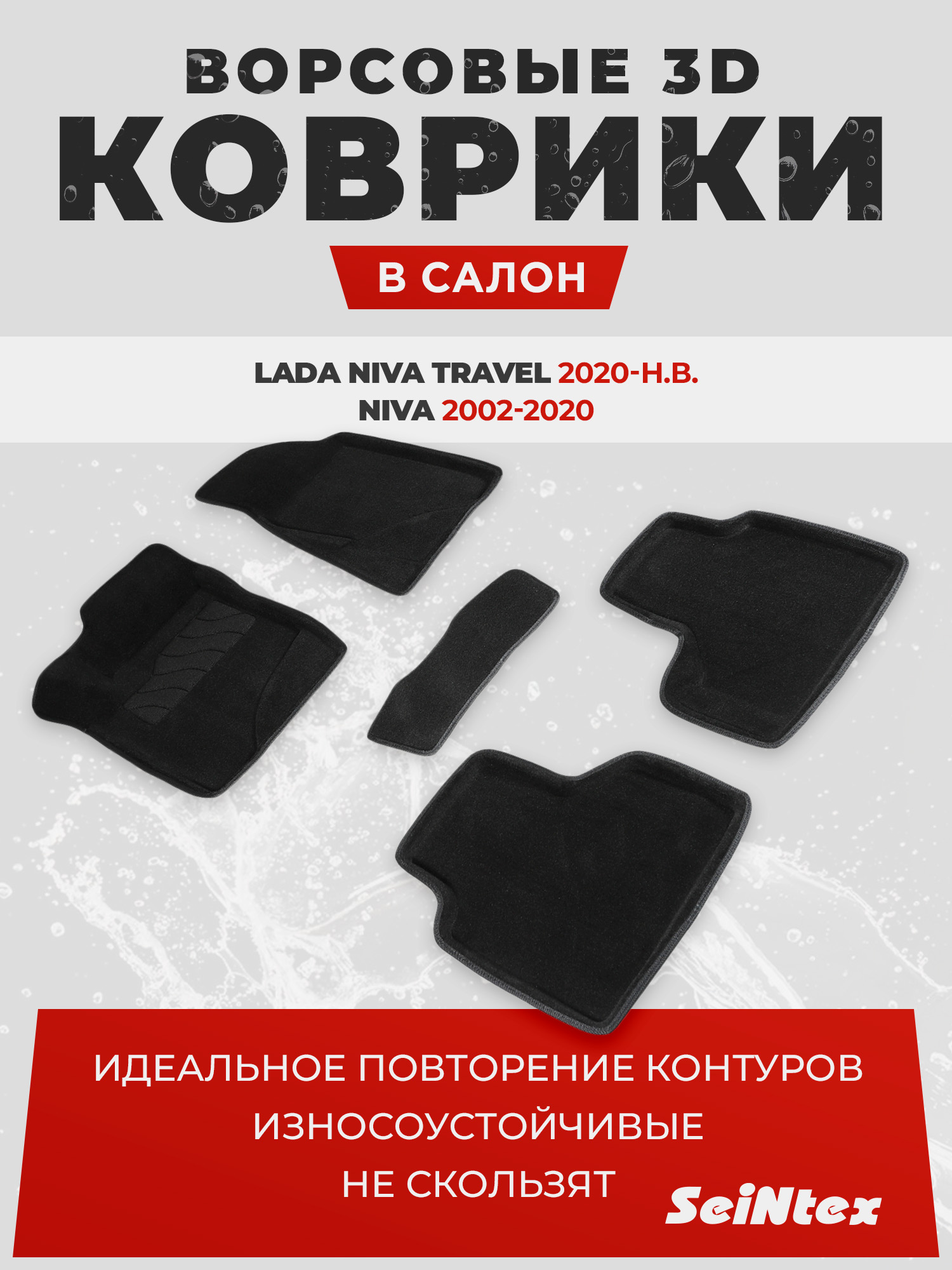 Ворсовые 3D коврики в салон Seintex для Lada Niva Travel 2020-н.в. / NIVA 2002-2020 (черные)