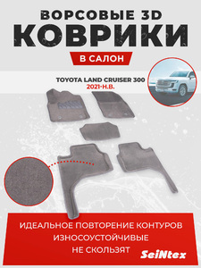 Ворсовые 3D коврики в салон Seintex для Toyota Land Cruiser 300 2021-н.в. (серые)