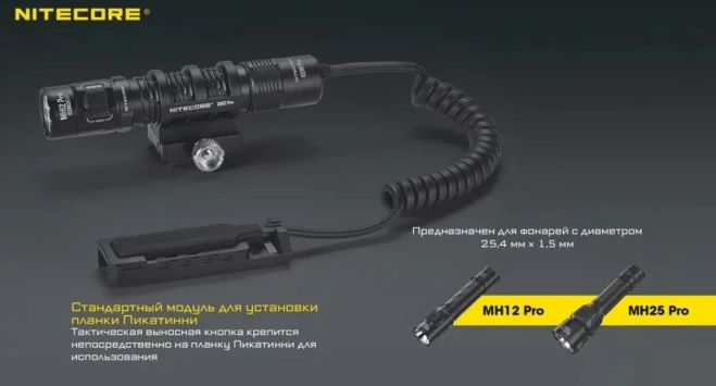выносная кнопка RSW3 полностью совместима с фонарями Nitecore MH12 PRO/MH25 PRO