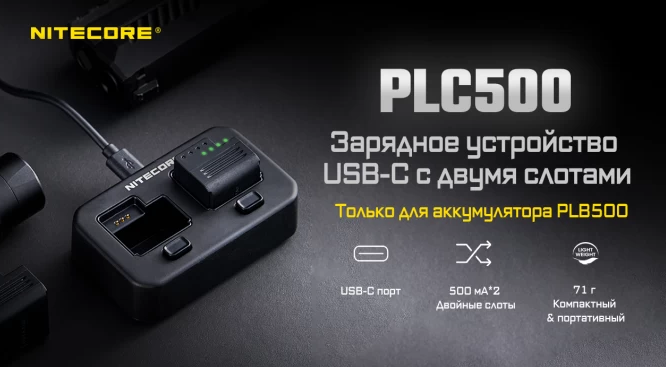Зарядное устройство Nitecore PLC500 — это специальное двухслотовое решение, созданное для быстрой и удобной зарядки аккумуляторов PLB500, используемых в современных тактических фонарях Nitecore серии NPL (NPL25, NPL25 GL, NPL27) . Оно сочетает компактность, прочность и простоту использования.