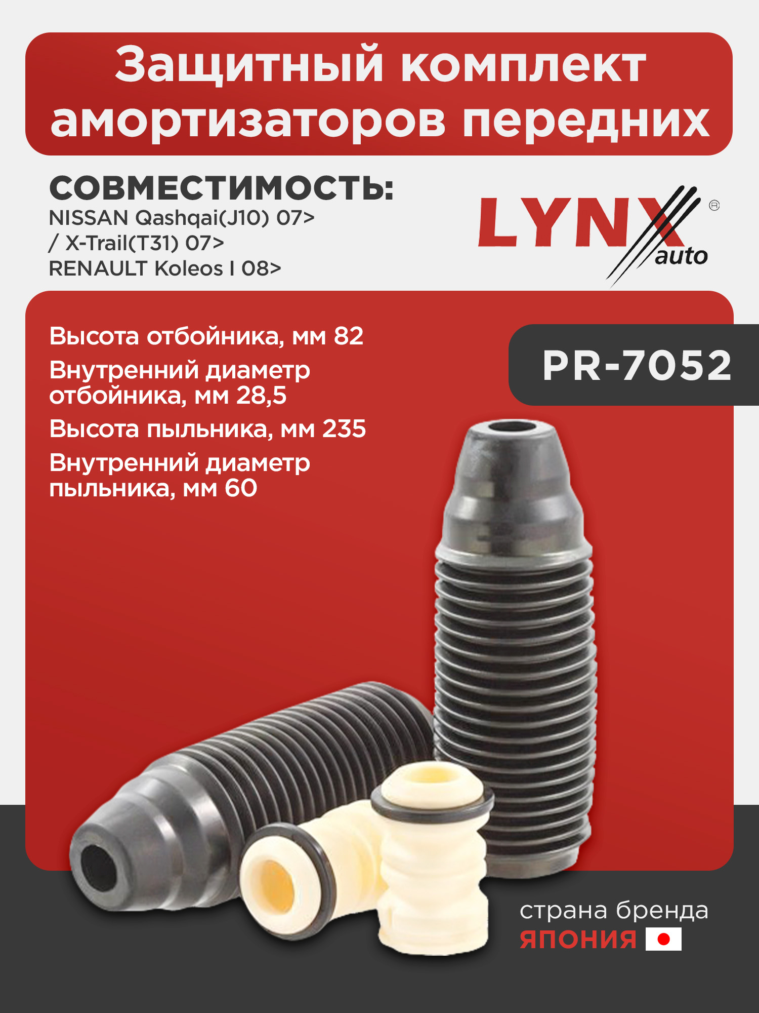Защитный комплект амортизаторов передних  LYNXauto PR-7052. Характеристики: NISSAN Qashqai(J10) 07> / X-Trail(T31) 07>, RENAULT Koleos I 08>. Высота отбойника, мм 82.