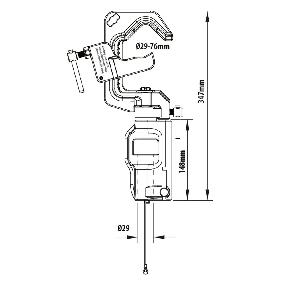 Зажим с головкой KUPO KCP-150 SWIVELING PIPE C CLAMP W/ UNIVERSAL HEAD с переставной губкой предназначен для установки на трубы диаметром от 28 до 78 мм и крепления осветительного оборудования весом до 15 кг на 16 мм креплении Baby или до 80 кг на 28 мм креплении Junior. Зажим изготовлен из прочного литого алюминия. Безопасность изделия подтверждена сертификатом TUV. Универсальная крепежная головка (с приемными гнездами 28 мм и 16 мм, а также выдвижным штифтом 16 мм) оснащена страховочным стержнем на тросике и поворотным креплением, что позволяет легко и удобно регулировать положение зажима.