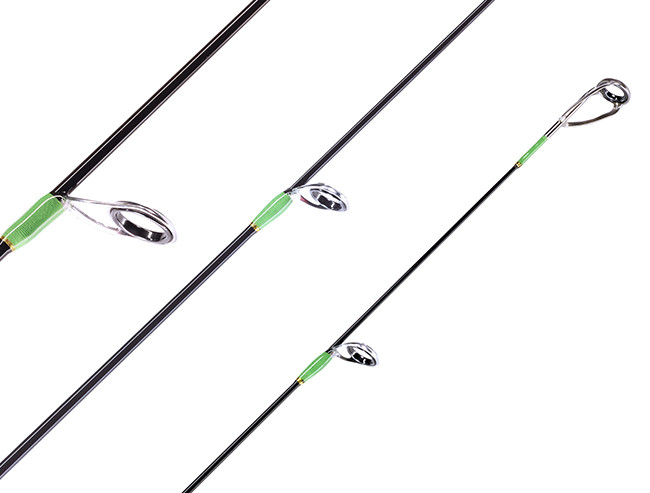 Элегантные и при этом надежные, добротные кольца рассчитаны на применение как монофильных лескок из нейлона и флюорокарбона, так и многоволоконных плетеных шнуров. Обмотка колец — ярко-зеленая.