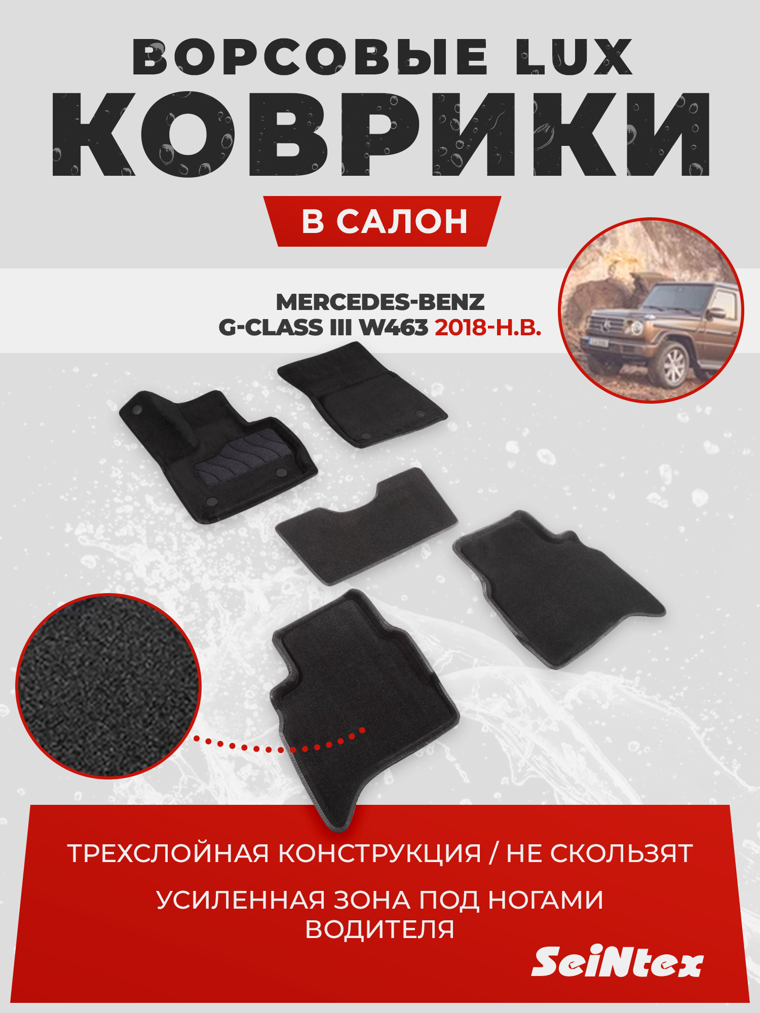 Ворсовые 3D коврики в салон Seintex для Mercedes-Benz G-CLASS III W463 2018-н.в. (черные)